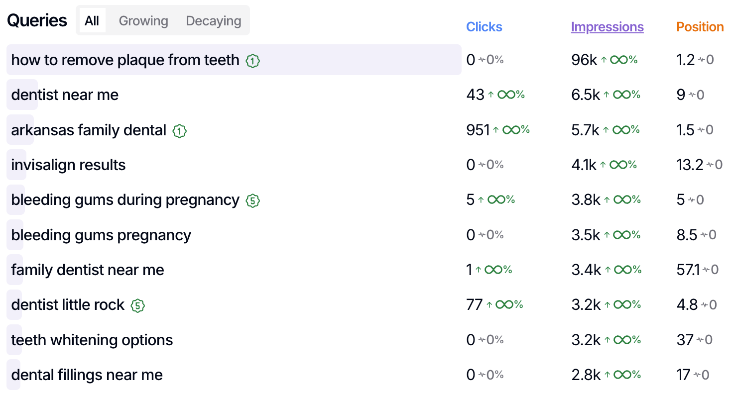 Where many practices get stuck is using Search Console (and other popular SEO tools) like a keyword scoreboard. “Did we rank higher for this keyword?” is a narrow framing that can mislead you about what's actually happening with your search visibility.
